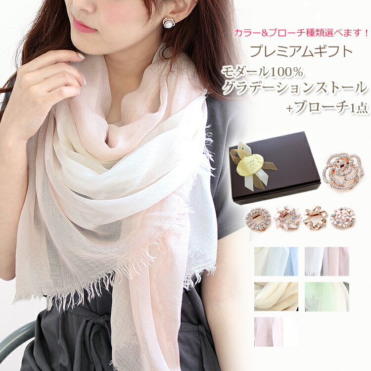 送料無料【宅配便】【モダールグラデーションストール+ピンギフト】プレミアム ストール モダール ブローチ 大判 ☆13 レディース メンズ ギフト ギフトセット プレゼント 長寿祝い お祝い 結婚式 誕生日 ラッピング付き 紫外線 夏 UV ホワイトデー 卒業式